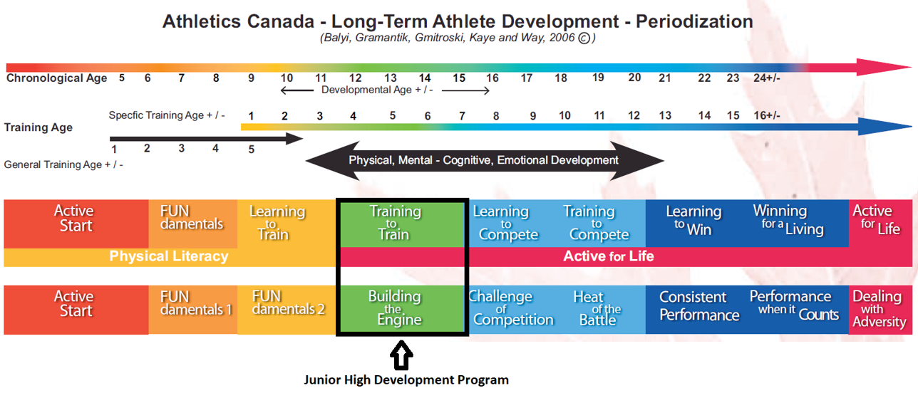 Our junior high development program works to develop athletes to excel and experience the learn-to-train and train-to-train phase of the Long Term Athlete Development Plan.